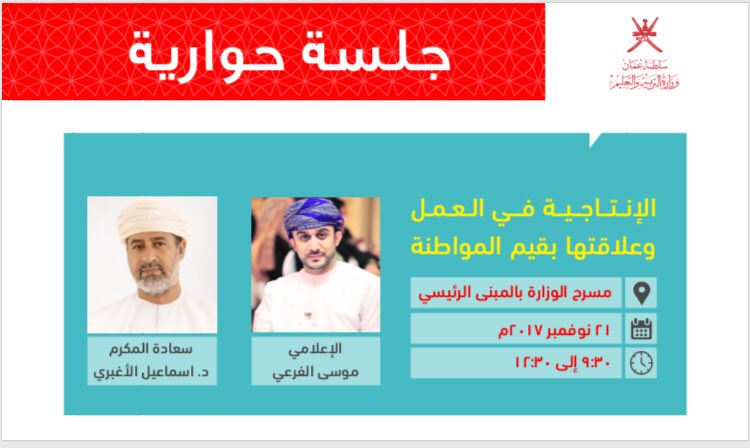 عنوان الجلسة: " الإنتاجية في العمل وعلاقتها بقيم المواطنة"