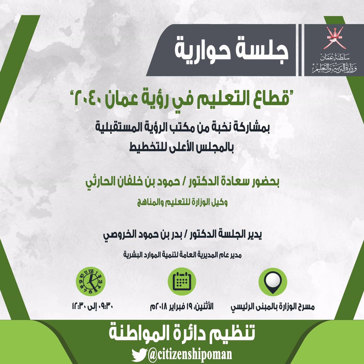 عنوان الجلسة:" قطاع التعليم في رؤية عمان 2040 "