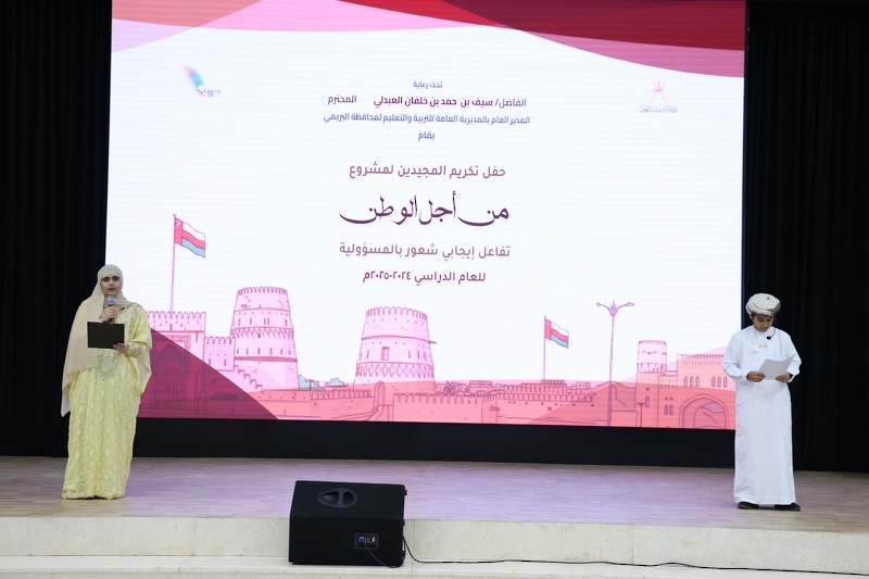المزيدتعليمية البريمي تحتفل بالفائزين في مشروع "من أجل الوطن تفاعل إيجابي وشعور بالمسؤولية" احتفلت المديرية العامة للتربية والتعليم لمحافظة البريمي بتكريم الطلبة المجيدين في مشروع "من أجل الوطن تفاعل إيجابي وشعور بالمسؤولية" للعام الدراسي ٢٠٢٤/٢٠٢٥ بمسرح تعليمية البريمي احتفاءً بجهود الطلبة المتميزة في تجسيد قيم المواطنة الفاعلة، وتقديرًا لدور المعلمين المشرفين الذين قدموا الإشراف التربوي والدعم التوجيهي، وإشادةً بإدارات المدارس التي وفرت البيئة التعليمية المحفزة لإنجاح هذا المشروع الوطني. رعى الحفل الفاضل سيف بن حمد العبدلي المدير العام للمديرية العامة للتربية ...