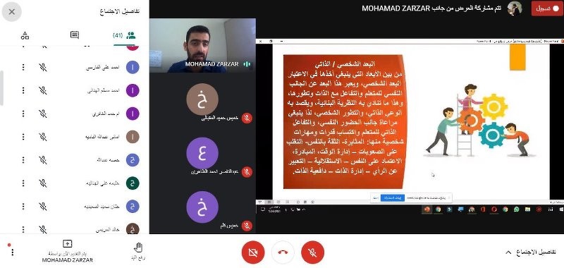 المزيدبرامج تدريبية افتراضية لمعلمي المهارات الحياتية واللغة العربية بتعليمية البريمي انطلق بمركز التدريب والإنماء المهني بتعليمية البريمي افتراضيا عدد من البرامج التدريبية التي تهدف لتطوير مهارات المعلمين عن بعد وتوظيفها بشكل مناسب حيث بدأ أول برنامج الذي حمل عنوان توظيف طرق التدريس الحديثة للتعلم عن بعد في مادة المهارات الحياتية وأستهدف معلمي مادة المهارات الحياتية بمدارس المحافظة لمدة ثلاثة أيام وأشتمل البرنامج على عدد من أوراق العمل مثل استراتيجية حل المشكلات والاستقصاء والتعلم باللعب والتعلم الذاتي وبحث الدرس وأخيرا التعلم التعاوني. ...